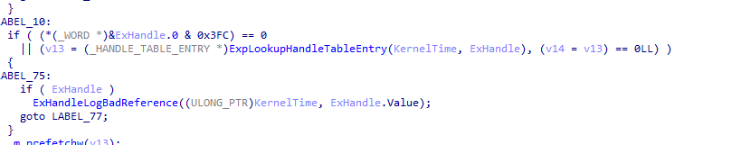 TableCodefield and its bitmasked usage viaExpLookupHandleTableEntry. ↩︎